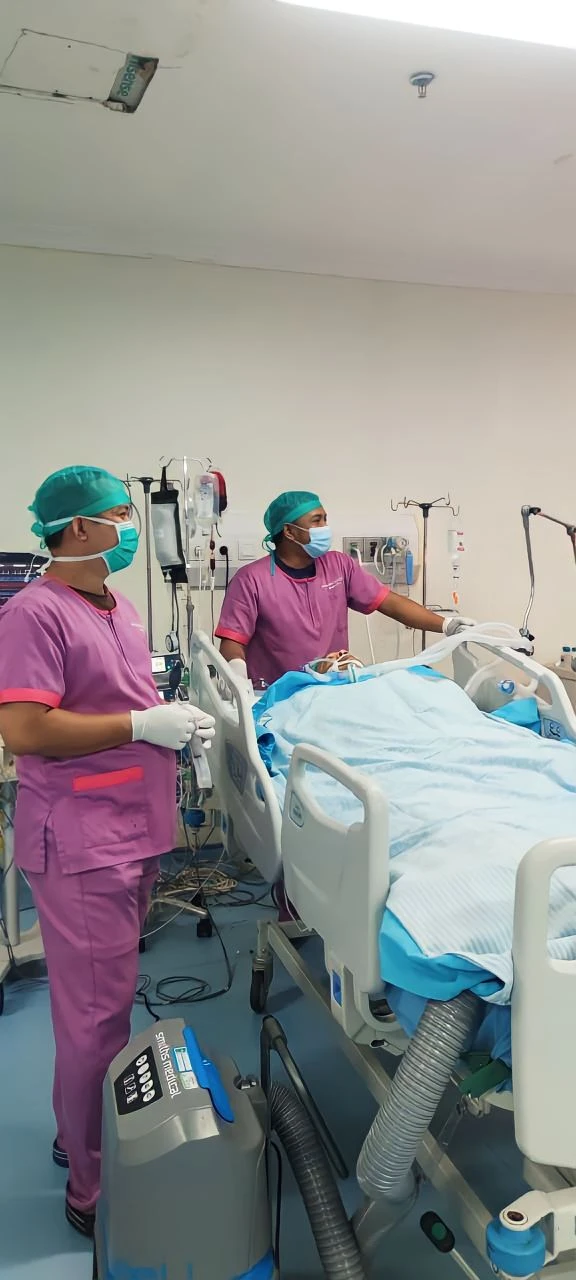 10-15 menit pasien masuk ICU bersama Sirkuler, tim perfusi, anastesi, overan sekaligus mengkonfirmasi kembali kejadian-kejadian selama OK